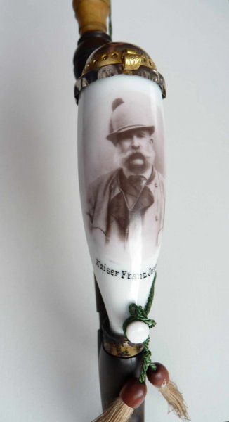 Porcelánová fajfka s císařem Františkem Josefem - v mysliveckém