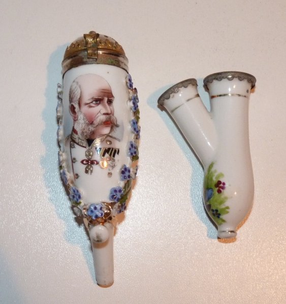 Porcelánová fajfka s portrétem Franz Josefa a s rostlinným motivem