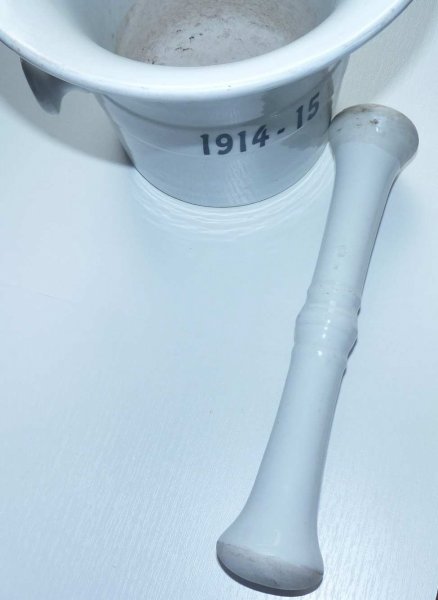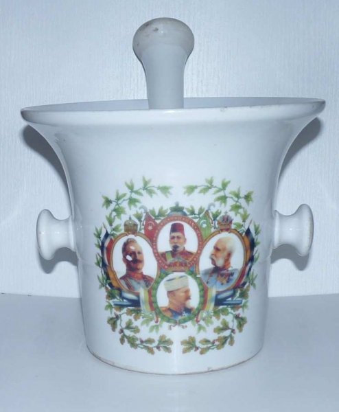 Porcelánový hmoždíř - Ferdinand ,Franz Josef,Mohamed a Wilhelm / unikátní zachovalost , 18 x 22 cm - včetně tlouku 27 cm