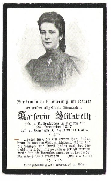 Portrét císařovny Sissi - lístek vydaný při úmrtí