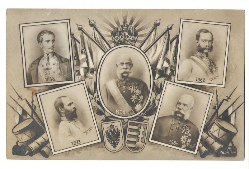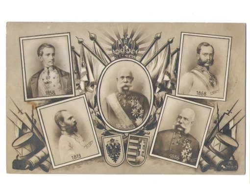 Portréty císaře Franze Josefa s vystavenými rakouskými symboly