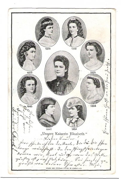 Portréty Elisabeth z let: 1847, 1854, 1856, 1859, 1862, 1863, 1872, 1878