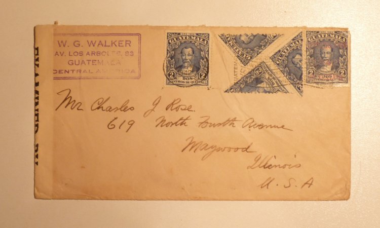 Poštovní obálka do USA se známkami z Guatemaly - mimořádná frankatura