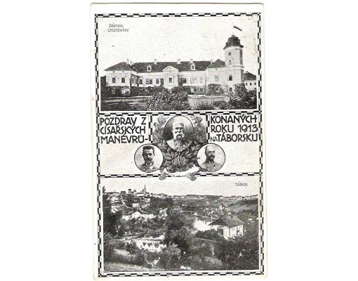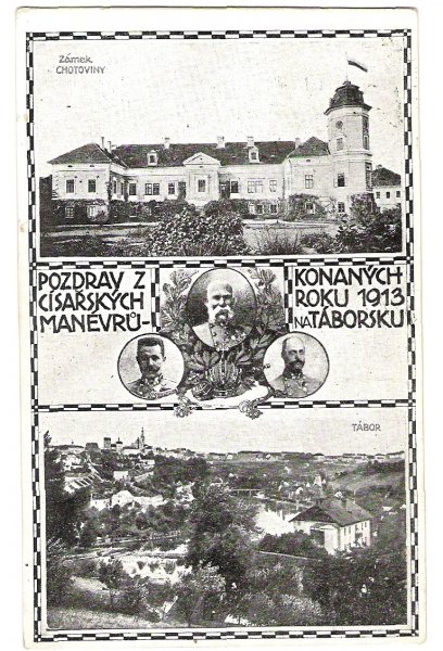 Pozdrav z vojenských manévrů konaných r.1913 na táborsku s portrétem císaře Franz Josefa