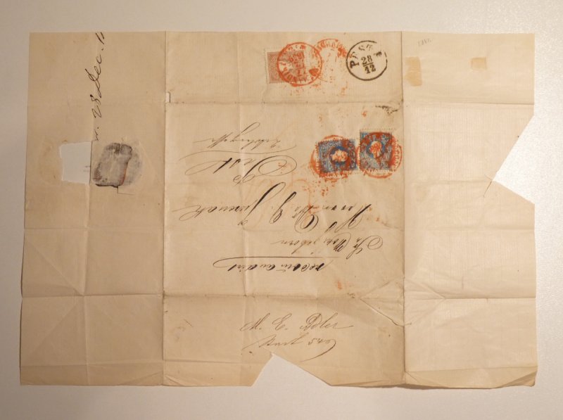 R - dopis frankovaný 2 x 15 KR a 1 x 6 KR - červená razítka