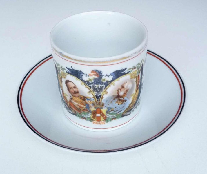 Hrníček s podšálkem / portrét Františka Josefa a německého císaře Viléma II. , rok 1914/16