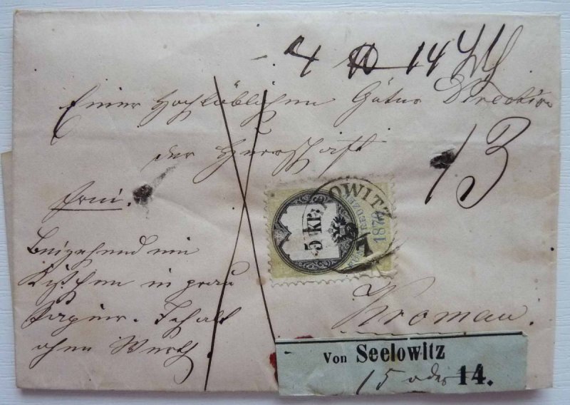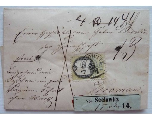 Seelowitz - nádražní dopis / 5 kreuzer kolek , mimořádně zachovalý stav