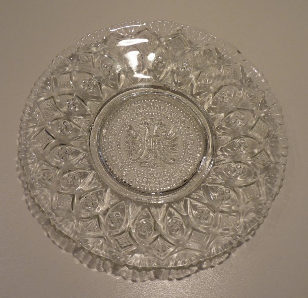 Skleněný talíř se znakem císaře Franz Josefa I.