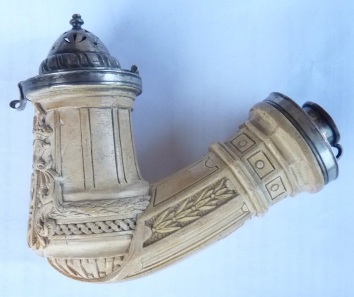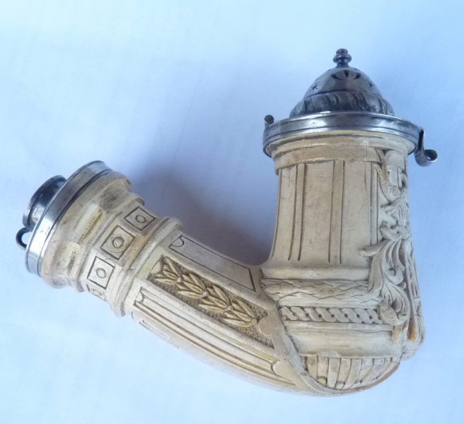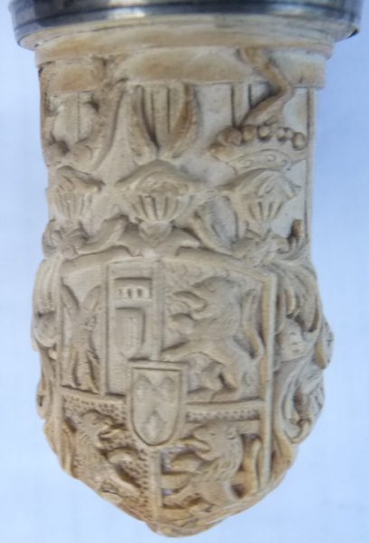 Fajfka zřejmě ze slonoviny , šlechtický erb , ručně vyřezávaná - zachovalé