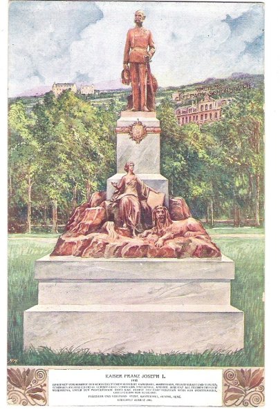 Socha Franz Josefa, ženy a lva, namalováno barevně