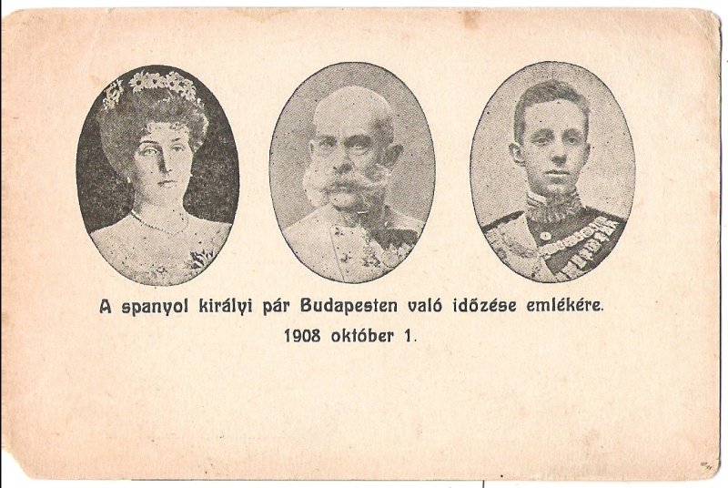 Pohlednice - František Josef a španělský královský pár v Budapešti / 1.říjen 1908