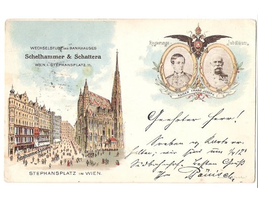 Stephansplatz a dvojportrét císaře Franz Josefa, Vídeň