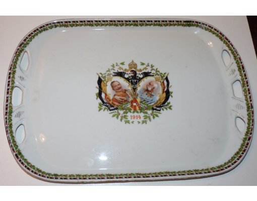 Tác (1914) s portrétem Franz Josefa I., Wilhelma II. a rostlinnými motivy