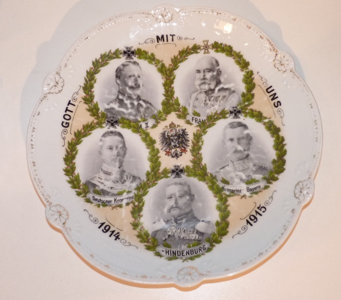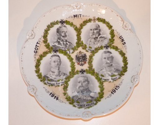 Talíř s podobiznami Franz Josefa I. , Wilhelma II., maršála Hindenburga a korunních princů