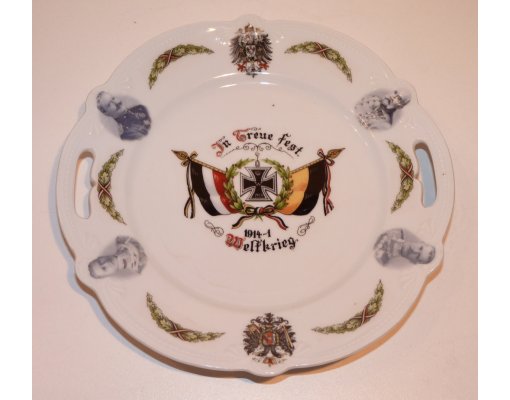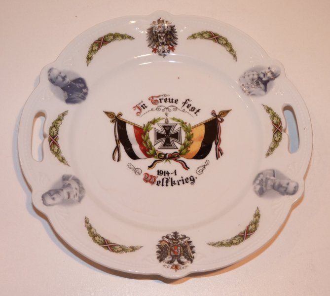 Talíř se znaky a vyobrazením čtyř evropských panovníků 1914