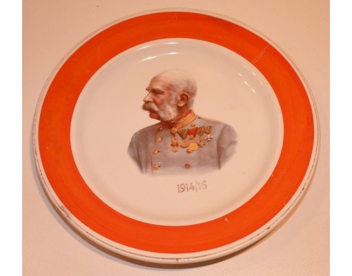 Talíř s podobiznou císaře Františka Josefa I. s červeným pruhem 1914 - 1916