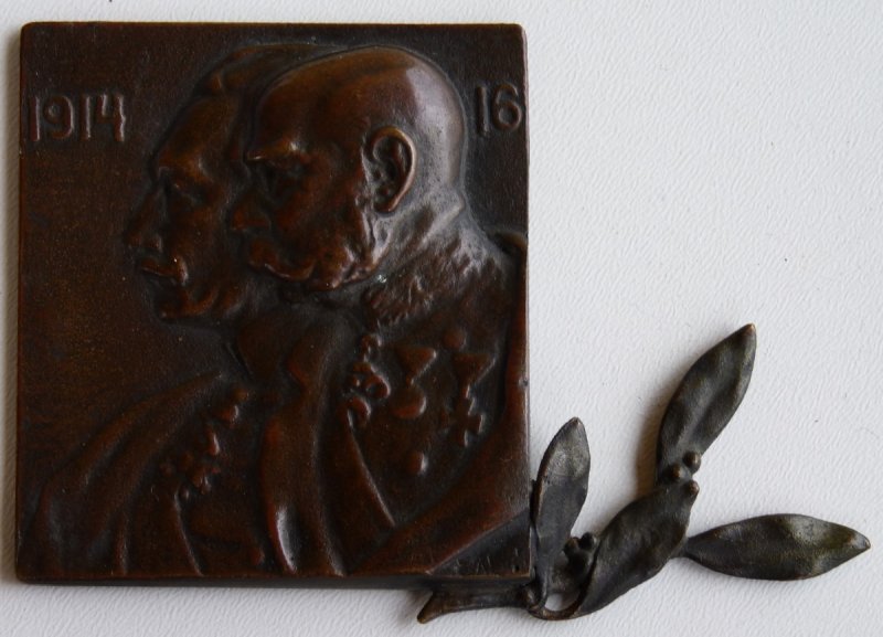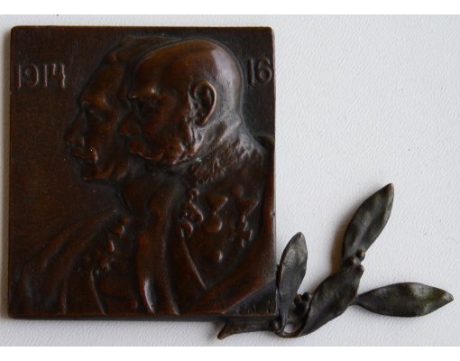 Tmavá bronzová plaketa s císařem Františkem Josefem