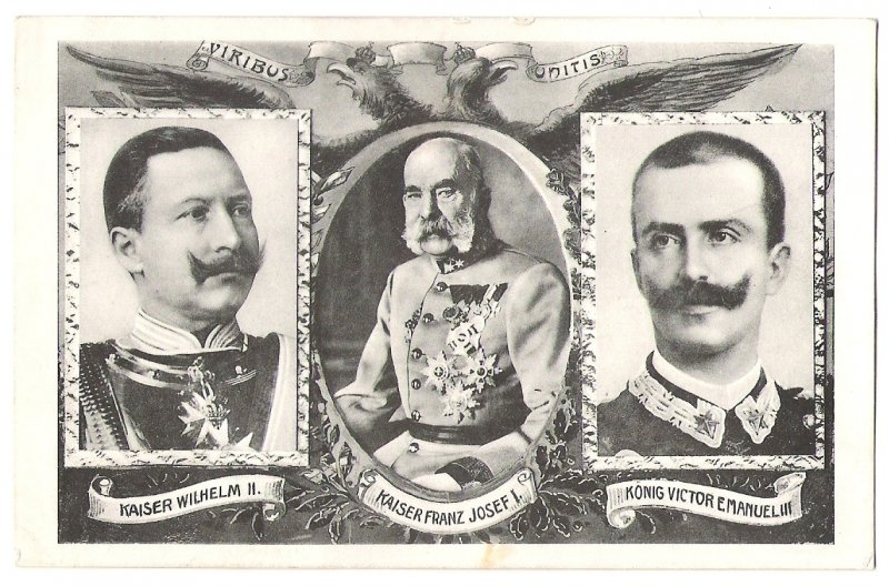 Trojportrét: Franz Josef, Wilhelm a král Viktor Emanuel III.