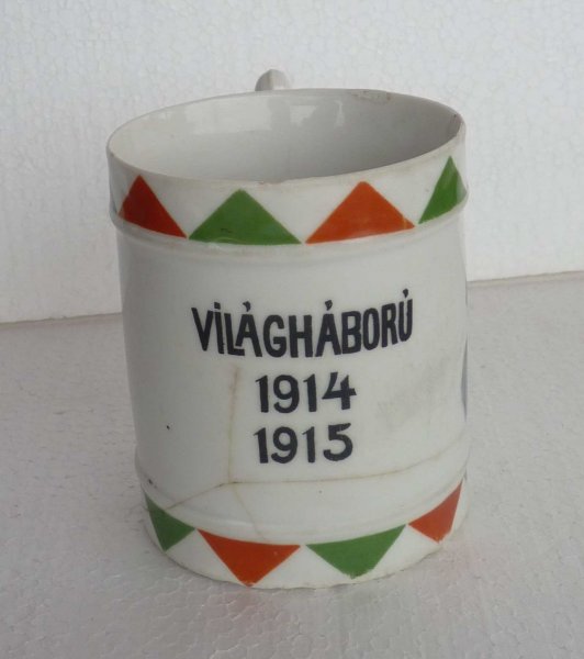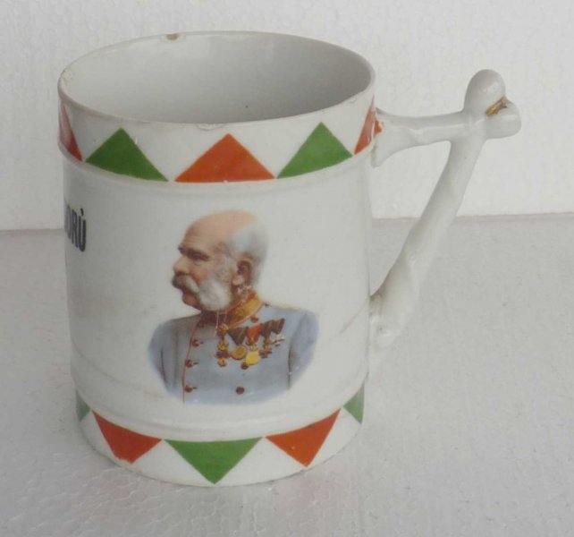 1914/1915 - uherský hrnek tzv. bubínek s portrétem císaře Franz Josefa / poškozený - tato varianta je vzácnější