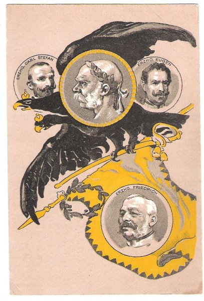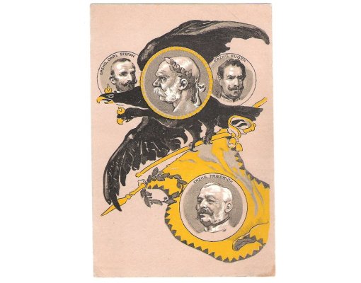 Umělecká pohlednice- dvojhlavý orel a vlajka