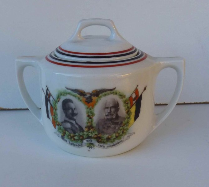 Velká cukřenka s dvojportréten císaře Viléma II. a Františka Josefa I.