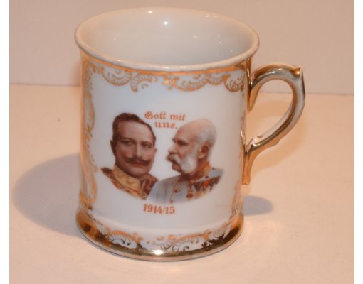Vilém II. a František Josef I. na hrnečku s pozlacením