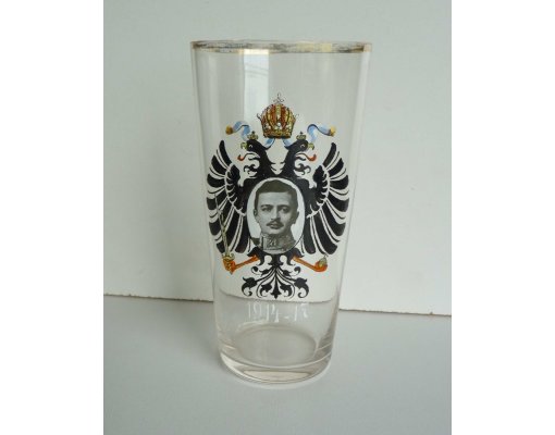 Vysoká sklenička s portrétem císaře Karla a rakouskou orlicí