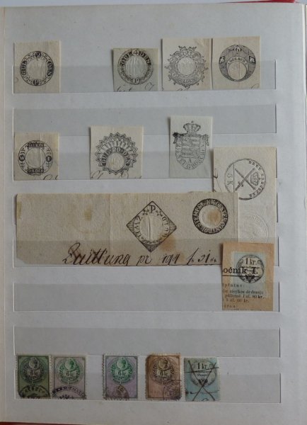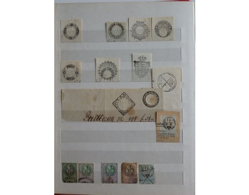Výstřižky natištěných kolků a známek z listin