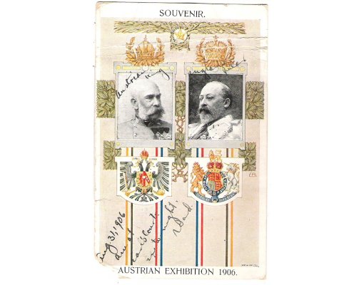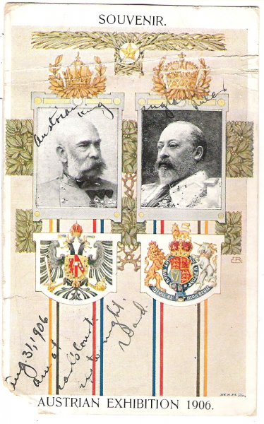 Vzácná pohlednice s portrétem anglického krále a Franz Josefa