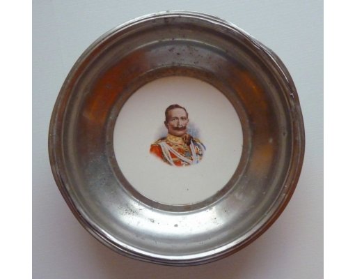 Zinkový talíř s porcelánovým středem - portrét císaře Viléma I. , mimořádný exponát