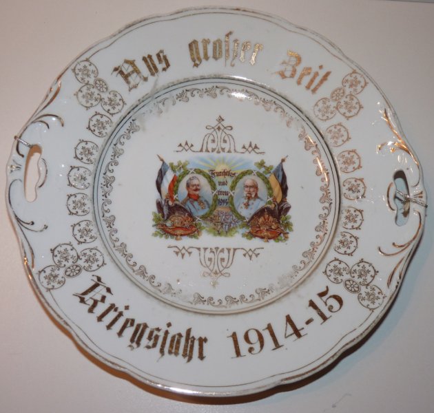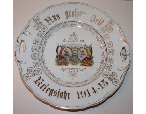 Zlatě zdobený talíř s portrétemFranz Josefa I. a Wilhelma II.