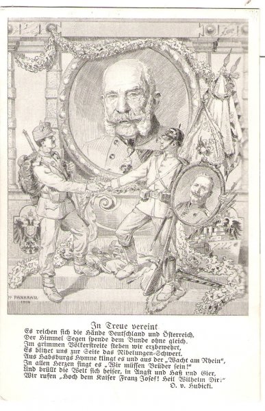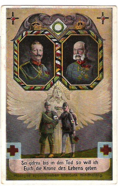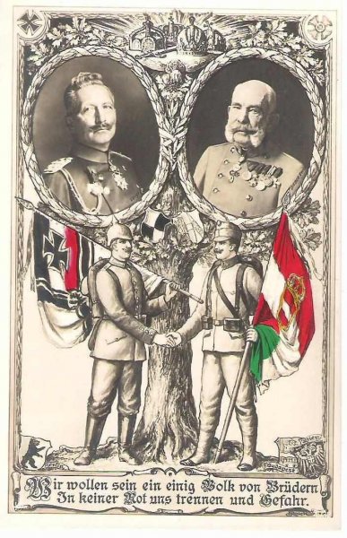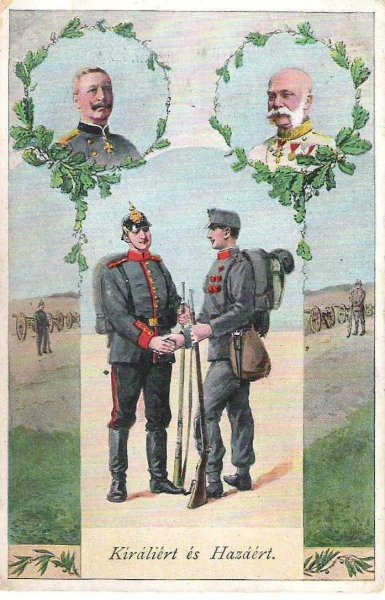 Mnoho podobných pohlednic ....1914 - I.světová válka ,patriotická pohlednice s portréty císaře Viléma a císaře Františka Josefa