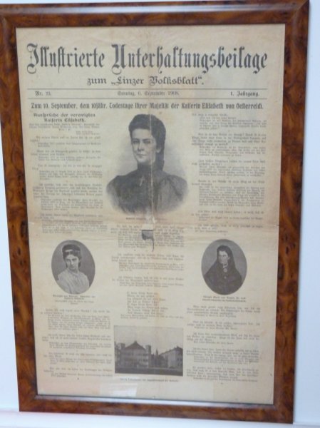 Noviny věnované 10 tému smutnému výročí atentátu na císařovnu Elisabet - rok 1908