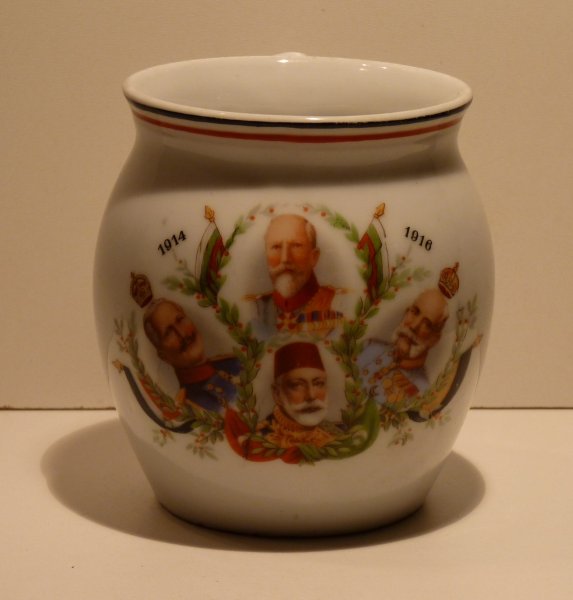 Baculatý hrneček s portréty čtyř evropských mocnářů