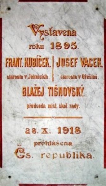 Jak se vyvíjela situace v jehnické škole, to dnes nevíme. Asi nebyla tak dramatická. Pan řídící nechal zřejmě desku sejmout a uložit, snad na půdu. V každém případě pro něj deska představovala jisté umělecké dílo, za které obec musela sochaři zaplatit. Jistě však litoval, že do prachu zapomnění upadnou i jména starostů Jehnic a Ořešína a předsedy místní školní rady, kteří se o vybudování školy zasloužili.