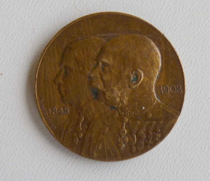 Bronzová medaile císaře Františka Josefa I. , k 60. leté vládě