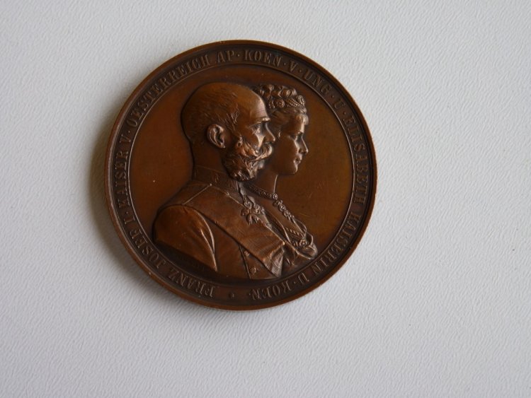 Bronzová medaile s císařem Františkem Josefem a Elisabeth