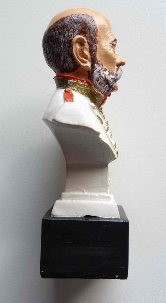 Busta císaře Františka Josefa - novodobá replika z bílého plastu