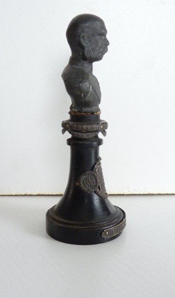 Busta Franz Josef - 60 let výročí vlády / dřevěný podstavec s popisem