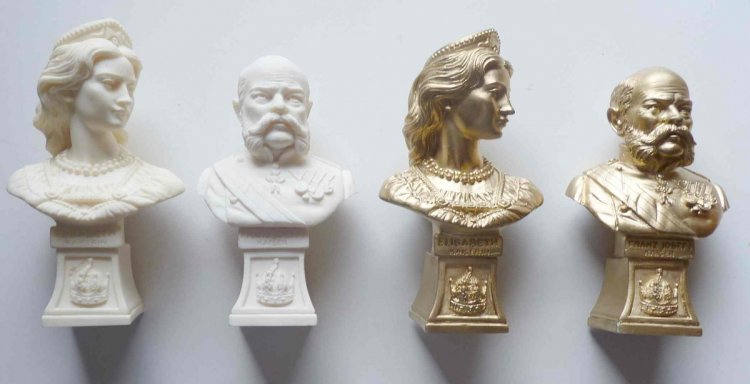 Čtyři novodobé busty císaře FJI a císařovny Elisabety / materiál - plast (či novodur ) + zlaceno