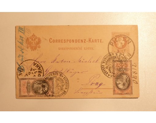 Celina 2 kr přifrankovaná 10 kr a 5 Kr kolkem