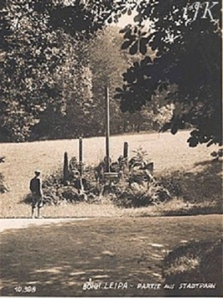 K výročí stříbrné svatby císaře FJI s císařovnou Alžbětou byl v parku v roce 1879 zřízen památník, vybudovaný tehdy nově vzniklým vlastivědným spolkem Excursionsclub, jež vznikl 27. února 1879 jako první vlastivědný spolek v mocnářství. Základním kamenem se stal pískovcový kvádr z hostince u rumburské výpadovky, bývalého Berkovského zámečku, zbořeného 15.4. 1879 během příprav ke stavbě Státního gymnasia na dnešním Palackého náměstí. Nejvýraznějším objektem památníku se stal sloup z Panské skály u Kamenického Šenova vysoký 570 cm, který byl zasazený na místo v dopoledních hodinách 28. dubna 1879 a čekal na dovoz dalších kamenů. Tento sloup byl darem ze sbírek českolipské reálky. K instalaci pomníku byl přizván okrasný zahradník pan Franz Bürgemeister ze Skalice, který sestavil pomník podle návrhu profesora Steffena. Slavnostního položení základního kamene památníku se 22. dubna 1879 zúčastnil mimo jiné i okresní hejtman A. G. Müller a slavnostní projev přednesl předseda Excursionsclubu, ředitel českolipské reálky, pan profesor Dr. Cajetan Watzel.Z podstatné části byl památník hotov již v roce 1880, kdy 29. dubna byla instalována pamětní deska ze světlé žuly s nápisem v němčině: