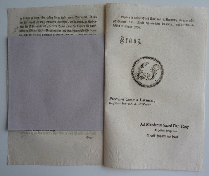 Cirkulář Františka II. k vydání bankovek 1 a 2 guldenů