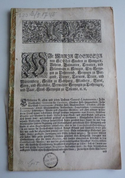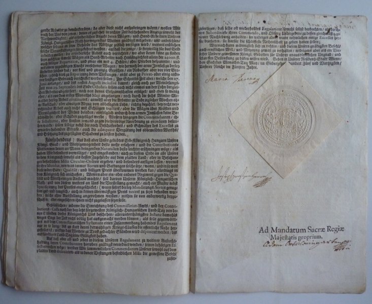Obsáhlý cirkulář Marie Terezie , s vlastnoručním podpisem Marie Terezie a císařskou pečetíObsáhlý cirkulář Marie Terezie , s vlastnoručním podpisem Marie Terezie a císařskou pečetí