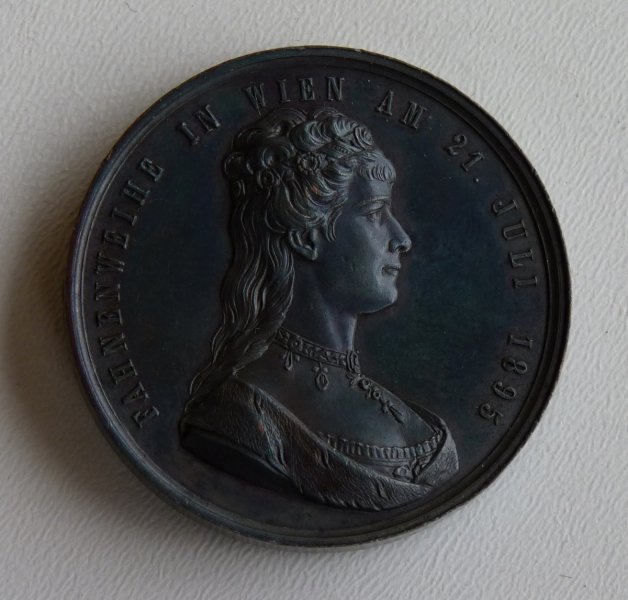 Oboustranná medaile : na jedné straně je císař František Josef a na druhé straně je císařovna Elisabeth