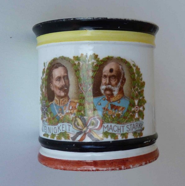 Mimořádný hrníček - císař Franz Josef a císař Wilhelm / spodní a horní lem ve státních barvách císařů