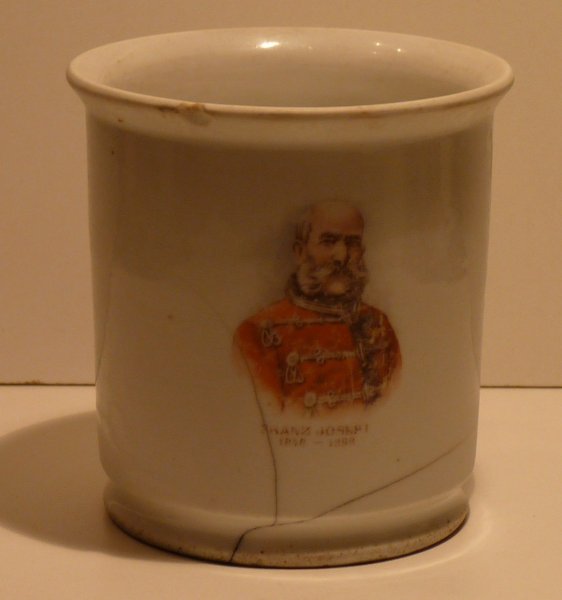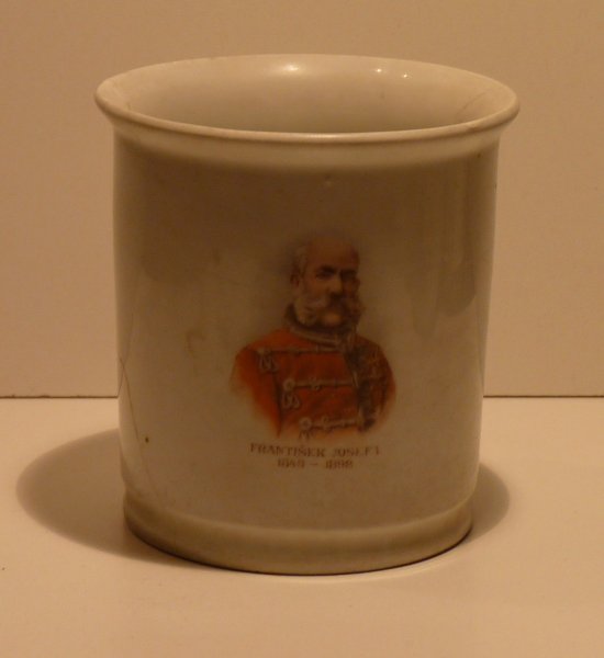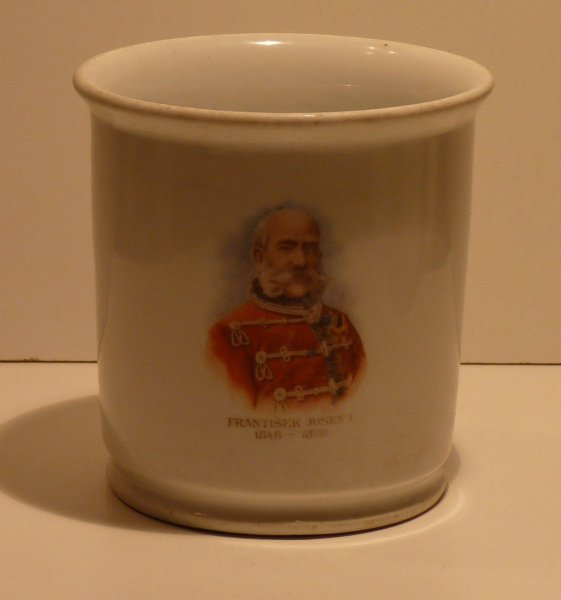 Císař Franz Josef I. v maďarské uniformě na hrnečku