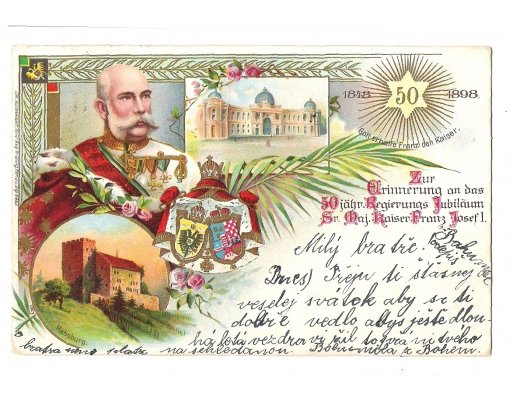 Císař Franz Joseph a památky na pohlednici