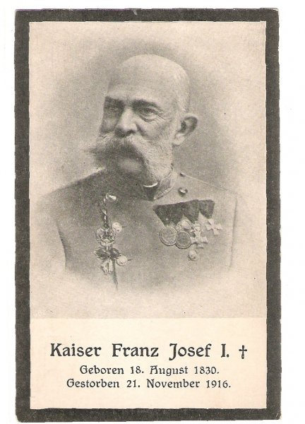 Císař Franz Joseph zemřel, úmrtní pohlednice