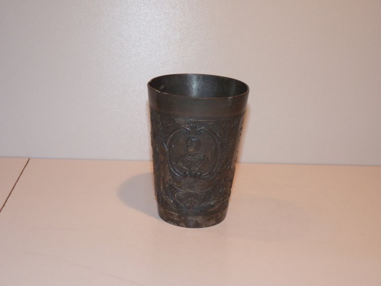 Císař Wilhelm a císařská koruna na cínovém pohárku
